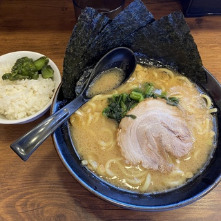 豚骨ラーメン(醤油)、760円。塩と醤油が選べますが醤油にしました。麺類注文の方にはご飯がサービス。この手のスープだとついご飯、食べたくなっちゃいますねぇ。