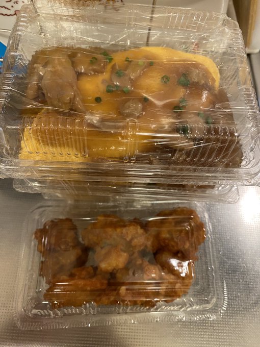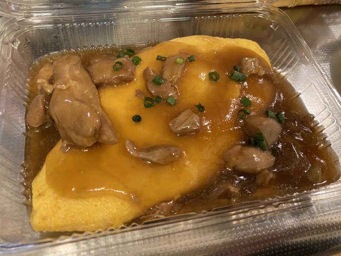 昨日の夕飯は鯛焼き屋 鯛安で買ってきたegggの惣菜 和風あんかけオムライスの上をご飯にかけたのと、鶏唐揚げ、その他。 pic.twitter.com/sYn3lOHfJ0