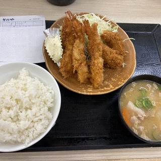 秋の海鮮フライ定食(牡蠣フライ2個、海老フライド2個、イカフライ1枚、豚汁(小))、979円(税込み)。美味しゅうございました。昼時だけあり忙しいのか流石に揚げたて、ではなかったかな。