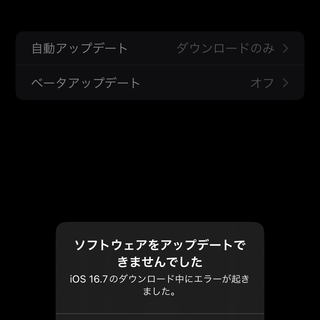 「ソフトウェアをアップデートできませんでした。iOS 16.7のダウンロード中にエラーが起きました」と表示されて失敗。iPhone 11の電源を一度切って、それからやっても駄目。それならMacに直接接続してMacからやるか、とMacでアップデートかけようとするとiOS 17だけが出てくるだけ。