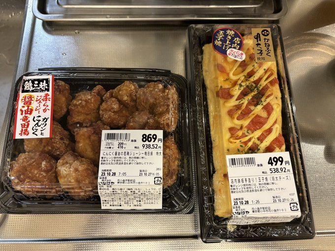 ブログ書きました。いなげや 花小金井駅前店で買ってきた総菜のいなげや にんにく醤油の若鶏ジューシー竜田揚げ 特大と店内鉄板手造り!玉子焼(明太チーズ かねふく明太子使用 さくらたまご使用) - YUU MEDIA TOWN@blog www.yuumediatown.com/diary/blog01/a... pic.twitter.com/lrPduvgnwk