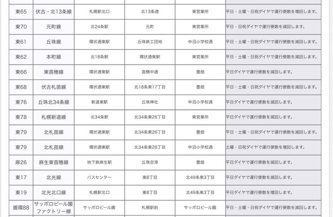 中央バス、馴染みのある路線、大半が減便やんけ。こりゃ、地下鉄東豊線を丘珠空港経由で豊畑東まで伸ばすしかない! pic.twitter.com/sBVxgxEn2E