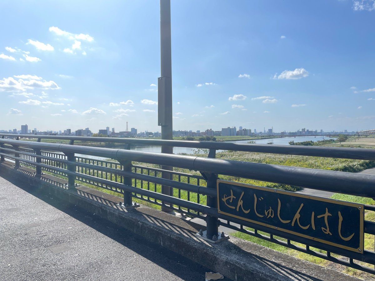 千住新橋から東京スカイツリーが見えます。以前にも千住新橋を越えて北千住を目指した事があったな、と思ったら