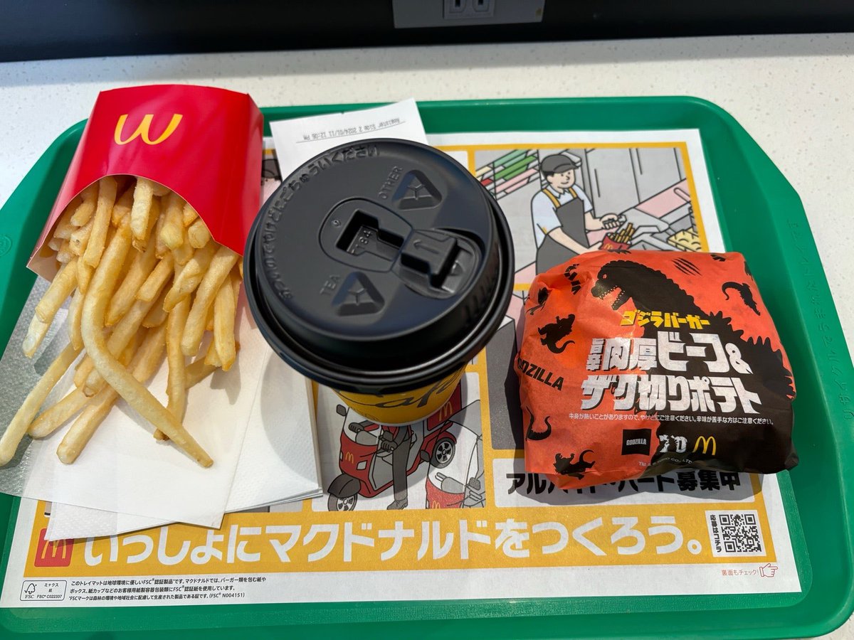 ★マクドナルド 月島駅前店でゴジラバーガー 旨辛肉厚ビーフ&ザク切りポテト セット