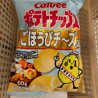 カルビー ポテトチップス ごほうびチーズ【5種のチーズ(カマンベール、モッツァレラ、チェダー、クリーム、エメンタール)とはちみつ使用】でございます。ワインとともにいただきました、美味しゅうございました。