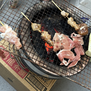 猿払産青ツブ貝、ラム肉、塩ホルモン、味付きジンギスカン、宮城県産牡蠣等を使って炭火でバーベキュー。ご飯食べなくてもこれらの肉と貝と野菜で腹一杯になりました。