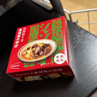 家庭料理・鉄板中華の青山シャンウェイと長期保存食「IZAMESHI」コラボの缶詰「にんにくと黒胡椒の砂肝」。以前に嫁さんが何かで頼んだ株主優待に入ってたとかなんとか。