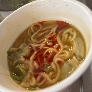 エースコックのカップ麺「飲み干す一杯 豚辛タンメン」。特製豚ラー油ペースト×モチモチ食感多加水麺。「豚とラー油の旨みが詰まった特製豚ラー油ペ0ストが決め手のタンメンです」とあります。お湯入れて5分待ち、ペースト入れてかき混ぜて完成。旨辛で美味しゅうございました。