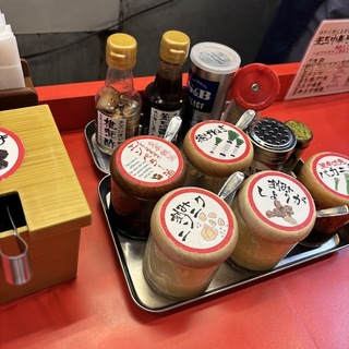 たくさんの卓上調味料や具材。