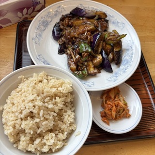 期間限定 なすのみそ炒め、600円とライス(玄米)220円。合計820円。コク旨肉味噌と旬の茄子でご飯がすすみます。本当、肉味噌いいなぁ、ナスも弾力な食感、濃厚な味でこの味噌にあいます。
