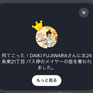 「Swarmで北24条東21丁目 バス停のメイヤーの座を奪われました」と。あの元 西友元町店(今はザ・ビッグ元町店)になってるとこのバス停か。そりゃ、メイヤーの座、奪われるよな。札幌に住んで居るわけでもないし。時々、北24条駅からバスに乗って乗換えるのに使ったり、してたんだっけかな?