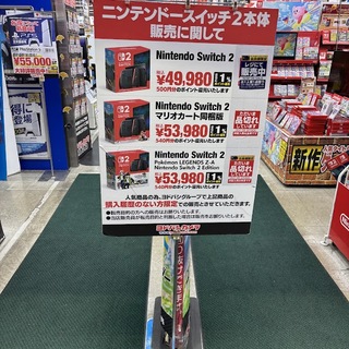 Nintendo Switch2 レジにて販売中の案内が。スイッチ2、在庫あるのか。ただしゴールドポイントカードプラス会員様限定という事ですが。