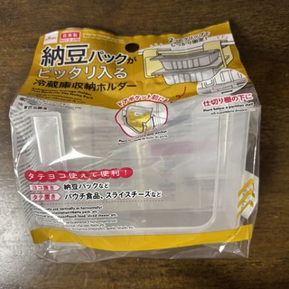 「納豆パックがピッタリ入る 冷蔵庫収納ホルダー(AB-24-'8 E098)」。納豆、よく食べるもので。で、だいたい3パックの納豆、1パック食べると包装とともにその辺にぐちゃっとなってしまう事が多かったですが、これ使えばコンパクトに収納できんじゃん、と。
