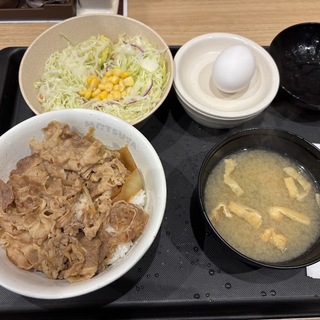松屋 堀切菖蒲園店で牛めしランチセット(並盛)(580円)と生玉子(100円)の合計680円。あれ?前と比べて