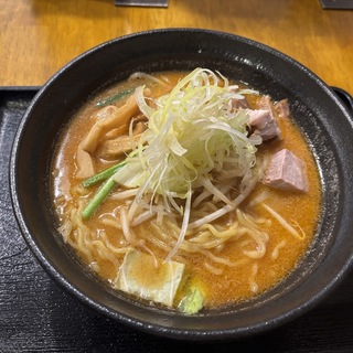 「コラーゲンたっぷりのゲンコツをしようしたスープに京都の桜味噌、越後こし、糀こし、江戸甘味噌を独自の配合でブレンドした特製の味噌だれを使用したスープ。青森県産のにんにくを100%使用した秘伝の香味油が旨味と深みを一層引き立てます。」