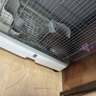 ウサギさん、ケージの中で足を伸ばしてお休み。多分、しまい忘れたのでしょうね、しばらくこの格好でした。