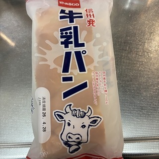 Pasco(敷島製パン) 信州発 牛乳パン、税抜き158円。なんかミルクパンを思い出して買ってしまった。記憶にあるミルクパンって感じじゃなくどちらかというと