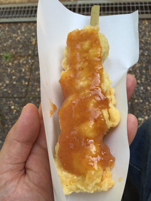 おやつに秩父名物だそうな、みそぽてと。衣を付けて揚げたジャガイモに甘い味噌をかけたものか。なかなか美味しい。揚げたてならなお最高かな。 pic.twitter.com/hF0YBZSAln