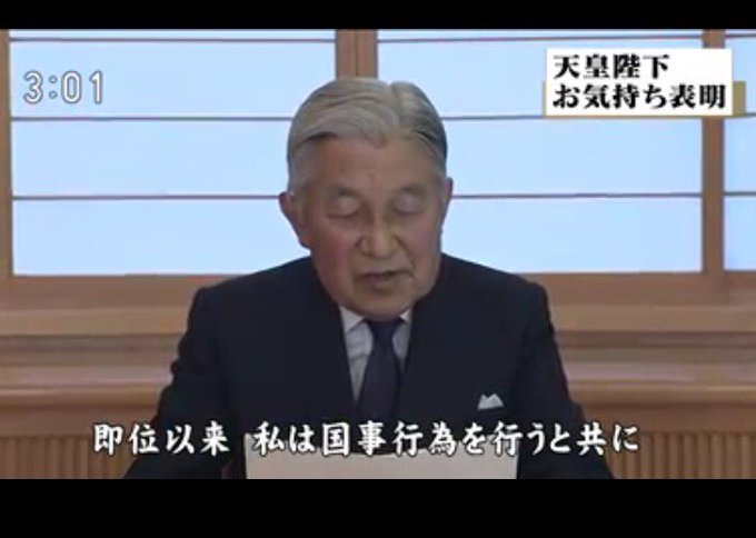 RT @tosasuigei: “天皇の終焉”という表現は意外だったけど、“崩御”は尊敬語であるため天皇自ら使うことはできないし、天皇の専用語として“崩御”がある以上、国民と同じ言葉を使うわけにもいかず、最終的に“終焉”という言葉に決まったのでしょう。この言葉ひとつとっても前例のない放送だったことがわかる。