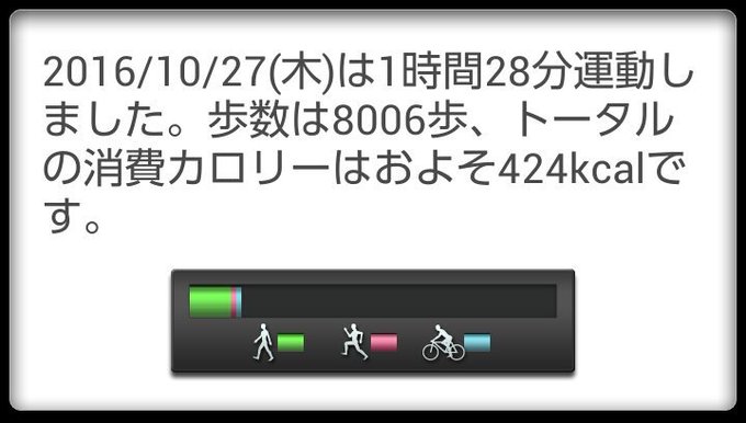 10月27日(木)の歩数は8006歩、消費カロリーは424カロリー。 pic.twitter.com/b6ezv4QNru