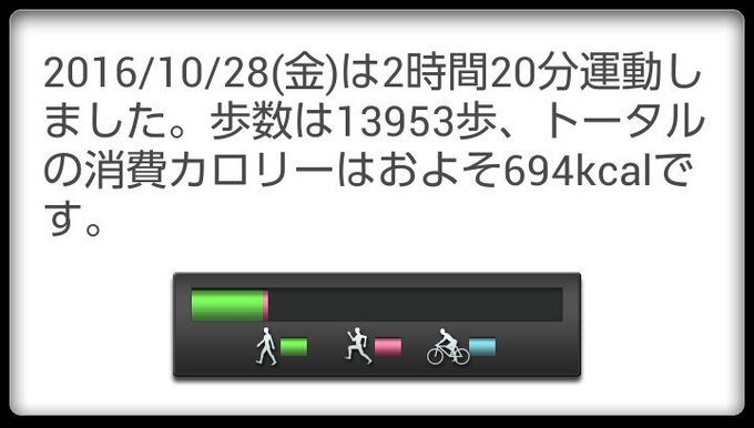 10月28日(金)の歩数は13953歩、消費カロリーは694カロリー。 pic.twitter.com/jyA7xiERho