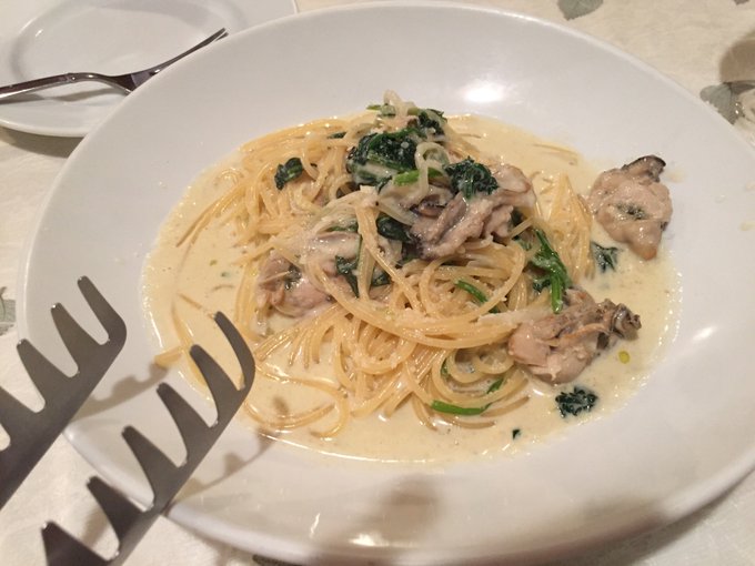 夕飯は牡蠣とほうれん草のクリームソースパスタ等。2009年以来か?!超久々に来たわ、美味い! (@ トラットリア・クオーレ in 小平市, 東京都) www.swarmapp.com/c/ahQYsvlfllH pic.twitter.com/0zQpytra8W
