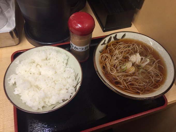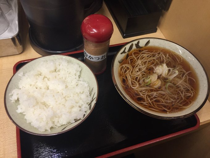 ★そばよし 本店で鰹節問屋直営 粉かつおかけまくれるおかかごはん(並ライス)とかけそば