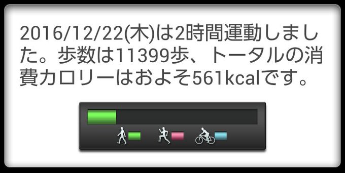 12月22日(木)の歩数は11399歩、消費カロリーは561カロリー。 pic.twitter.com/ypdpY5aQ7C