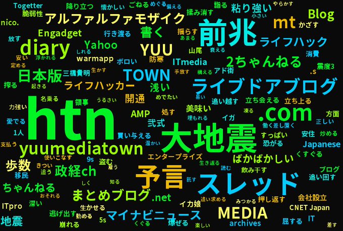 まとめサイトやニュースサイトのリンクをメモ代わりにつぶやいているからそういう言葉が並びますな・・・・ twitter.com/yuumediatown/s…
