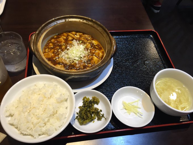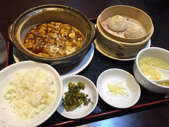 昼飯はランチの麻婆豆腐定食(小籠包付き)、880円。辛い!美味い!!これ、いいわあ。 (@ 野沢屋 in 品川区, 東京都) www.swarmapp.com/c/kSUI3vi2ONH pic.twitter.com/sGhLiDJz9X