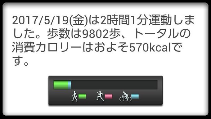 5月19日(金)の歩数は9802歩、消費カロリーは570カロリー。 pic.twitter.com/PnphtD9inY