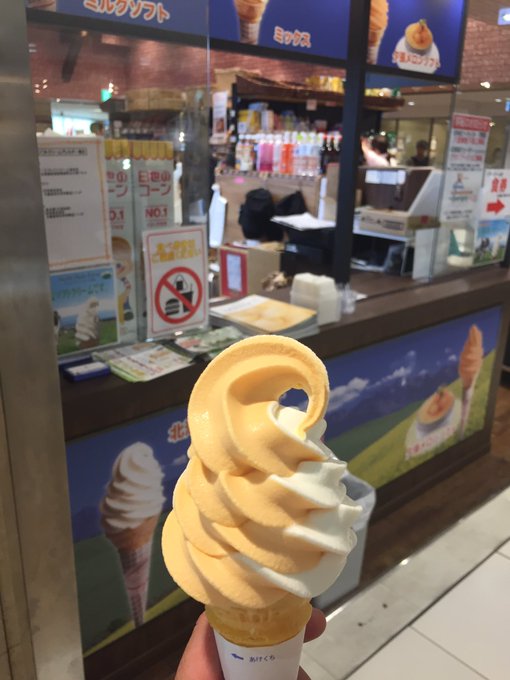 暑いので北海道ミルクソフト、夕張メロンソフトのミックスソフトクリーム、350円。濃厚で美味い! (@ 北海道フーディスト - @h_foodist in 中央区, 東京都) www.swarmapp.com/c/02mZFOCCTxd pic.twitter.com/kSzPZxhJ6W