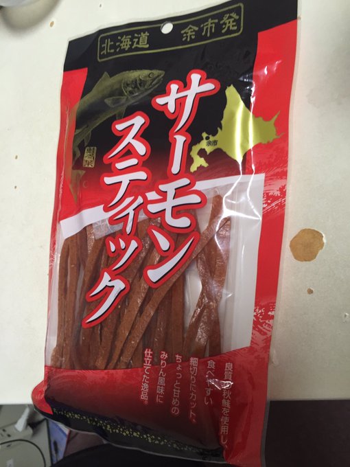 北海道 余市発 サーモンスティックも酒飲みつつ食いまして。