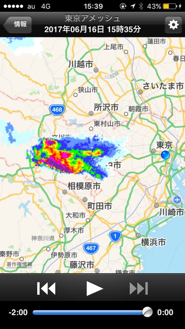 東京都心は雨が降ってないのに多摩では雨が降ってるとか聞いてアメッシュみたら、なんだこゃあ・・・・・ pic.twitter.com/W8nB6YIYfk