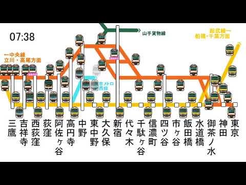 多いときは2〜3分に一度で国分寺のホームなんか2面だから常に来る、みたいな感じだよな。>中央線 朝ラッシュ時の運行略図 www.youtube.com/watch?v=d1w90t… @youtubeさんから