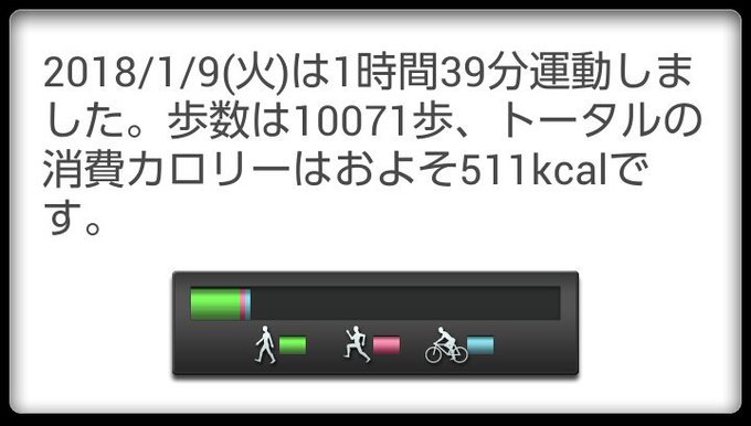 1月9日(火)の歩数は10071歩、消費カロリーは511カロリー。 pic.twitter.com/Hx4XLXhZ6j