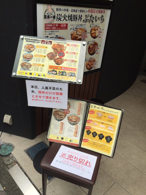昼飯は北海道帯広バラ豚丼 レギュラー(肉6枚)、890円。人手不足のため、ランチは豚丼のみの提供でラーメンなしだそうな。 (@ ぶたいち北海道番屋 東京人形町店 in 中央区, 東京都) www.swarmapp.com/c/gFmKivGJcTg pic.twitter.com/wYDs82VZEc