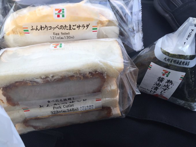昼飯はセブンイレブンで買ってきた熟成すじこ醤油漬けおにぎり、ふんわりコッペのたまごサラダ、とんかつサンド。コーヒー。 pic.twitter.com/BTmzZ5XCE8