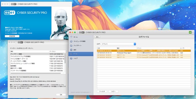 ブログ書きました。【ESET Cyber Security Proが】Mac OS X 10.11.6で起動してログインするとレインボーカーソルぐるぐる【原因っぽい】: YUU MEDIA TOWN@Blog www.yuumediatown.com/diary/mt001/ar… pic.twitter.com/XZ6J8fXyR5