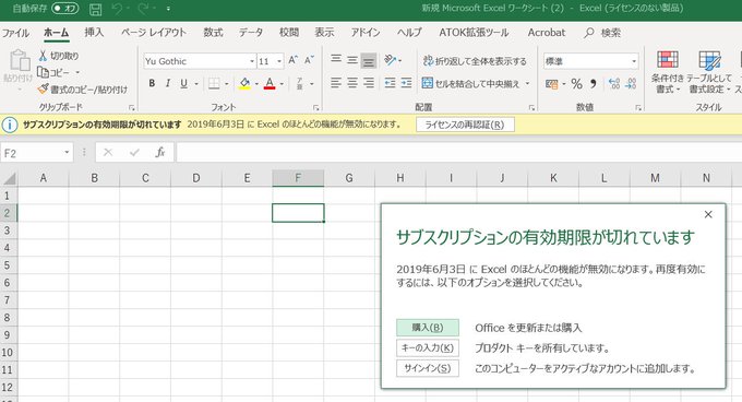 ブログ書きました。Microsoft Office Home & Business Premiumのワードやエクセルで「サブスクリプションの有効期限が切れています(もしくは切れます)」表示: YUU MEDIA TOWN@Blog www.yuumediatown.com/diary/mt001/ar… pic.twitter.com/qpY56b5xDw