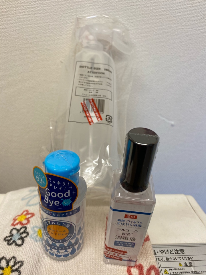 左がドラッグストア サンドラッグで買ってきた韓国産 アルコールハンドジェル(原材料はエタノール、水、グリセリン、酢酸、トコフェロール、カルボマー、トリエタノール、アミン、ヒアルロン酸Na、香料)(ポップベリー株式会社)。アルコール度数63%を強調しているのはこの前の外国産ジェル、アルコール度数が低くて対ウイルス対策には適さない、と暴かれたからですかね。実際これも火をつけようとしたらつくのだろうか?マスクはドラッグストアは非常に慎重で変な輸入物は取り扱っていませんでしたが消毒液はどうなんでしょうか?