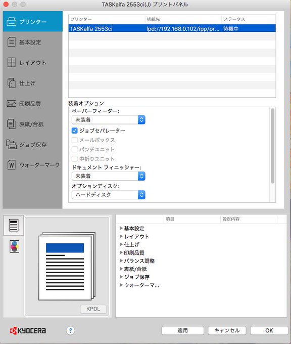 ブログ書きました。最近の京セラの複合機「TASKalfa(タスクアルファ)2553」シリーズ等、Macでもカラー設定白黒(モノクロ)、両面ではなく片面印刷と標準設定を「Kyocera Print Panel」で設定可能なのね: YUU MEDIA TOWN@Blog www.yuumediatown.com/diary/mt001/ar… pic.twitter.com/B7CPkb5fWX