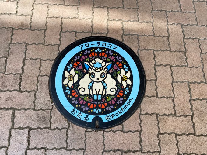 ポケモンマンホール(ポケふた)アローラロコン(おたる)。