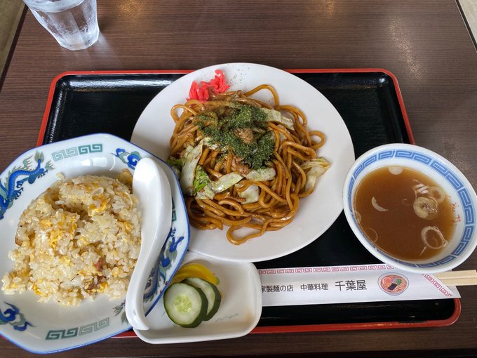 昼飯はチャーハンヤキソバセット。炒飯と川越太麺ソースヤキソバのセット、780円。美味かった。 (@ 中華料理 千葉屋 in 川越市, 埼玉県) www.swarmapp.com/c/6dsp8vvMMkP pic.twitter.com/inb7VKP3AC