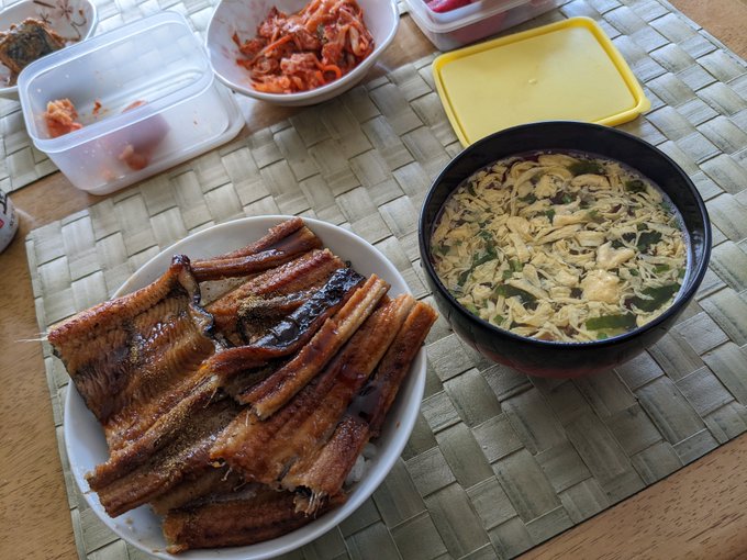 朝飯は穴子丼、目玉焼き、スープ、キウイフルーツ、その他 pic.twitter.com/NggTriP0oe