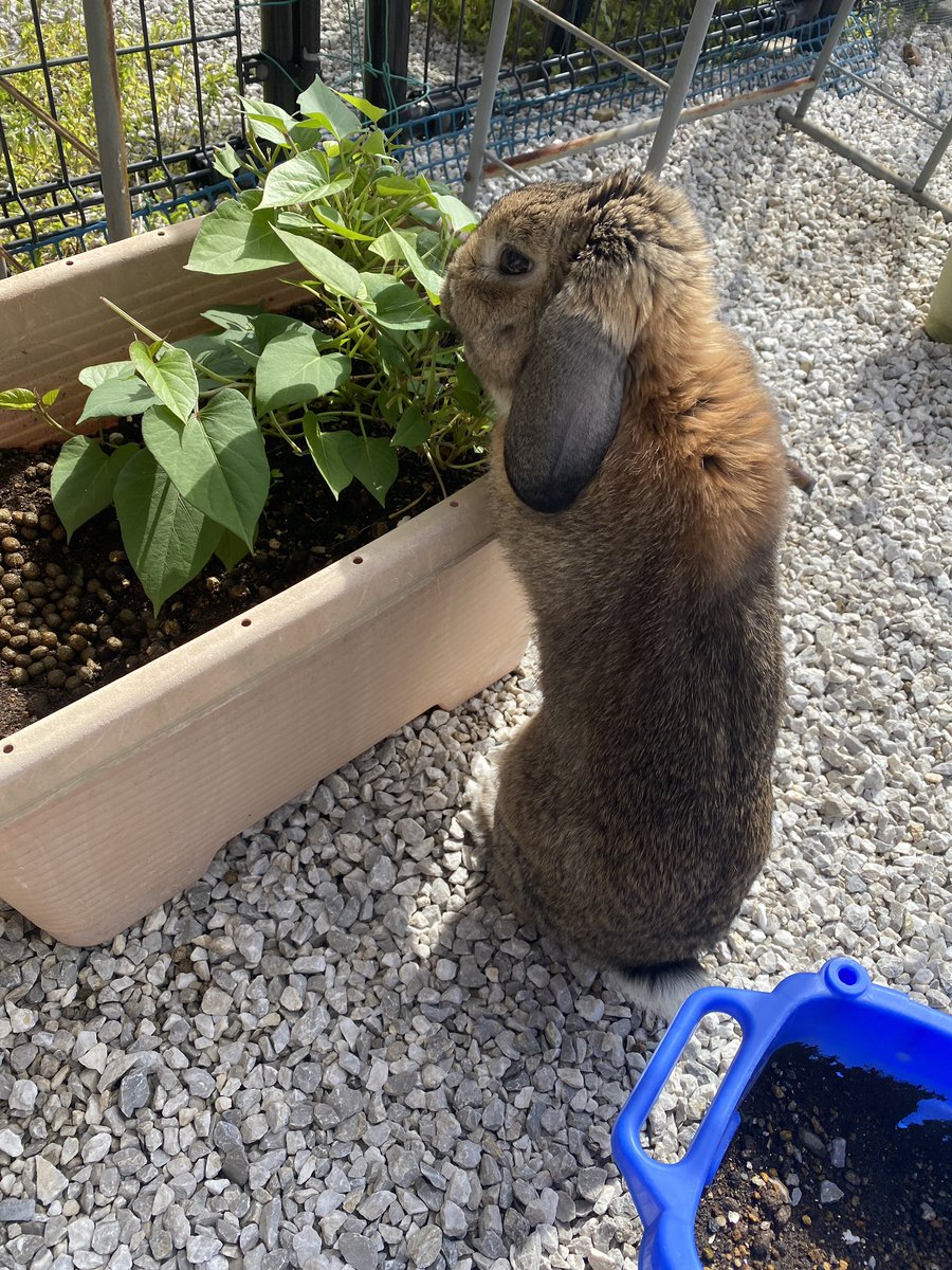 ウサギさんも庭で遊ばせたり。そして家の中に入ったウサギさん。