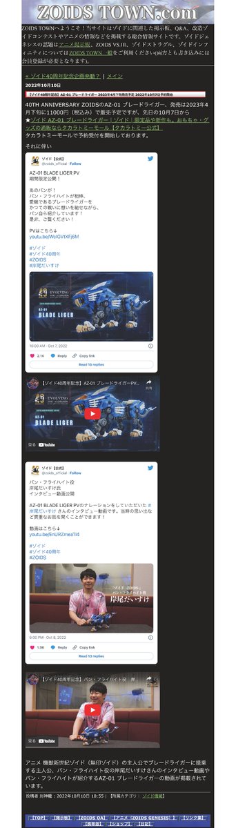 サイト更新しました。>【ゾイド40周年記念】AZ-01 ブレードライガー 2023年4月下旬発売予定 2022年10月7日予約開始: ZOIDS TOWN. com www.zoidstown.com/app/mt001/arch… pic.twitter.com/tvXLR5LXqg