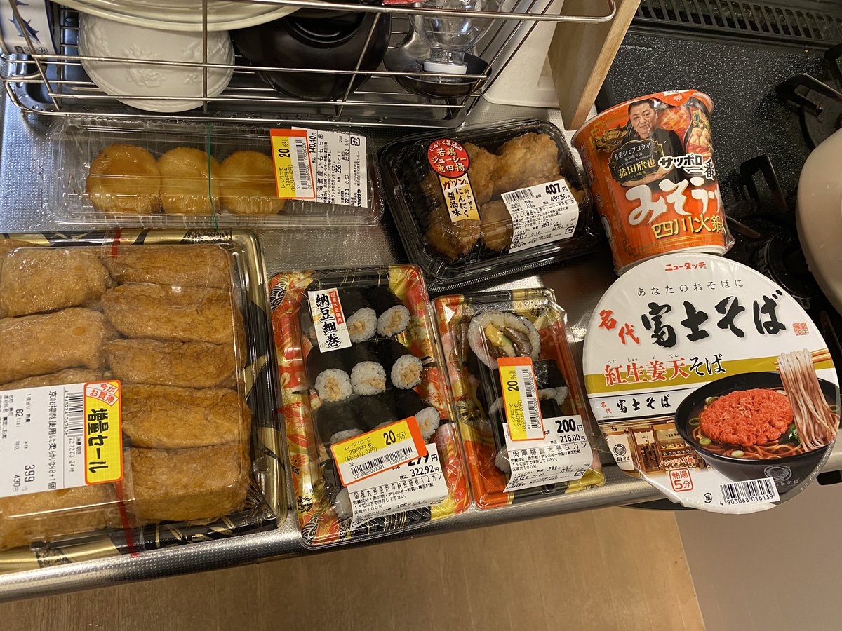 京のお揚げを使用したやわらかいなり8+1個、北海道産いももち、ガツンと効かせたにんにく醤油味撮り唐揚げ、納豆細巻、肉厚椎茸太巻、その他を食べてあとはネット見たりテレビ見たり。