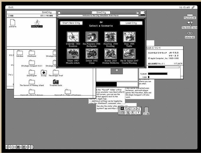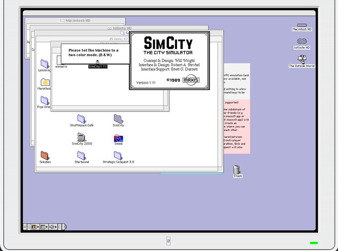 ブログ書きました。【ひょっとしてあのシムシティもプレイできる?】1990年代のMacをブラウザ上で完全再現すべく作られたエミュレーター「Infinite Mac」で漢字Talk7.5.3やMac OS 9: YUU MEDIA TOWN@Blog www.yuumediatown.com/diary/mt001/ar… pic.twitter.com/vLB9ecxTXg