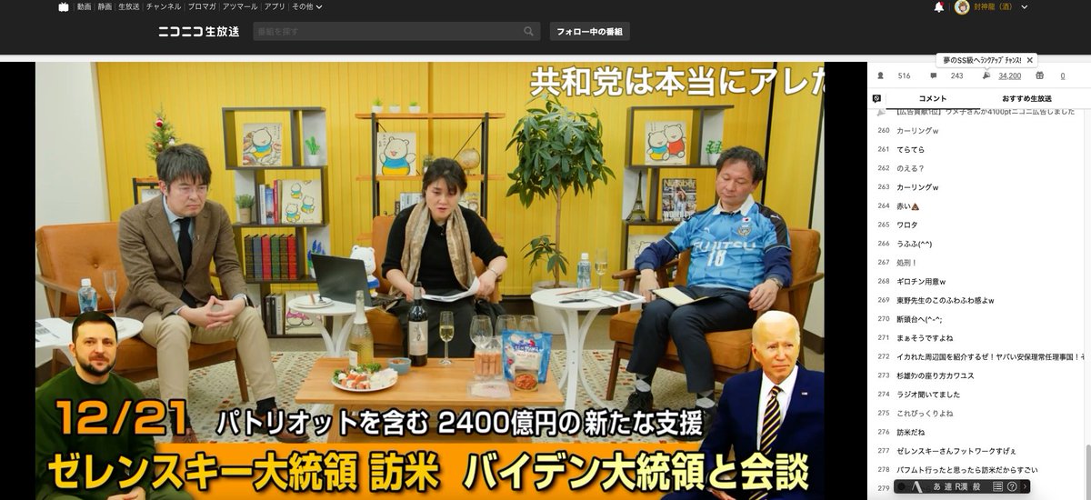 視聴中>小泉 悠×東野篤子×高橋杉雄「大忘年会2022」 #国際政治ch 135 / ニコ生視聴中 live.nicovideo.jp/watch/lv339439…